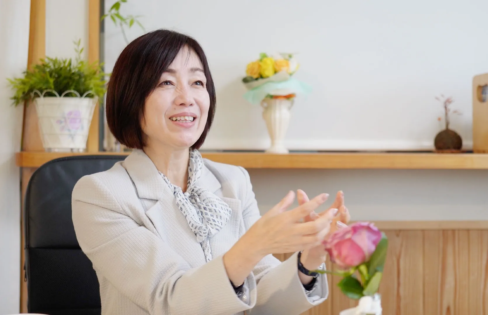 営業というのは自分が得をすることじゃなくて、相手の気持ちになって、お客さまがいかにメリットを享受できるのかを真剣に考える仕事なんだとわかってきました。困った時にすぐに手を差し伸べてあげられる提案ができるようにしておきたい。そのことばかりを意識して行動していたら、会社で言われていた目標をクリアできるようになりました。そして人としても成長できた気がします。始めの頃は私も、売り方ばかりを考えていた時期もあります。でもそれより、自分のキャラのままやったほうが成果が出る。不思議。